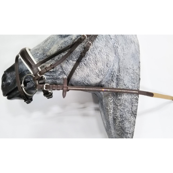 手綱にもクリスタルがあしらわれており、見る人を惹きつける豪華な頭絡セットです。