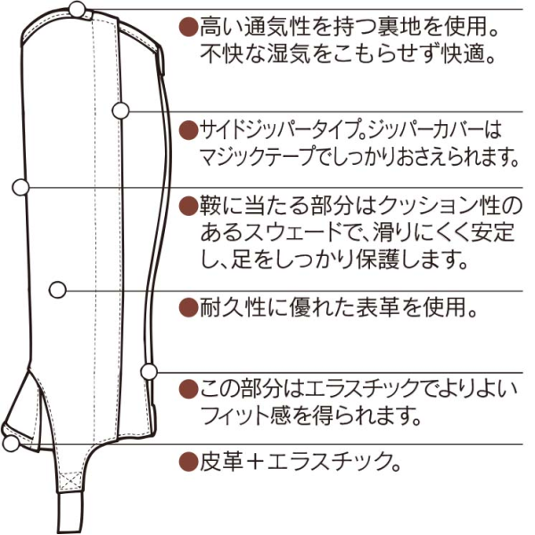 ・鞍に当たる部分はクッション性のあるスウェードで、滑りにくく安定し、足をしっかり保護します。