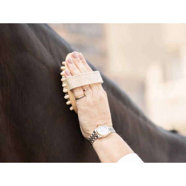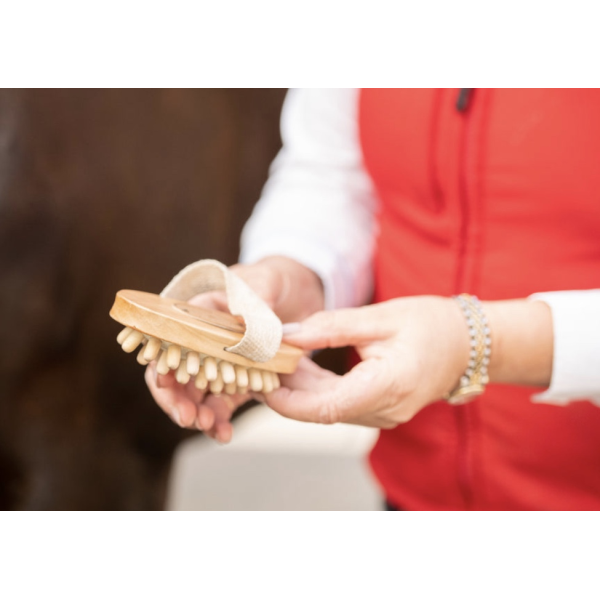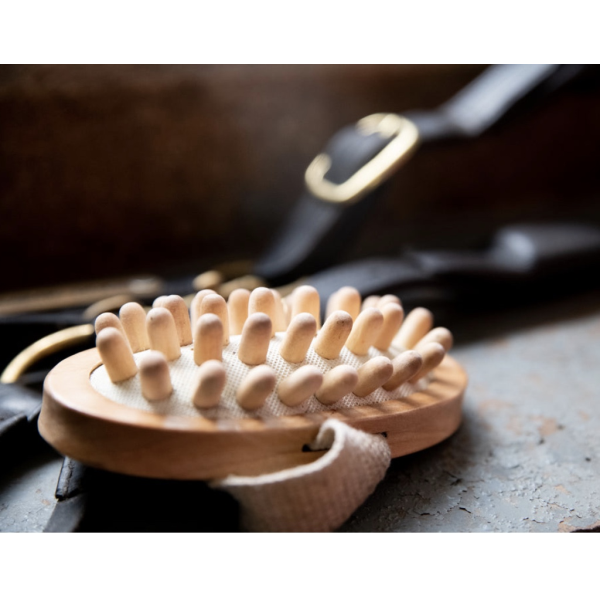 Borstiq マッサージ ブラシは、滑らかで丸みを帯びた木製の歯で作られており、血行を改善しながら、角質、抜け毛、頑固な汚れを表面に浮かせ、皮膚と毛並みをより健康な状態にします。