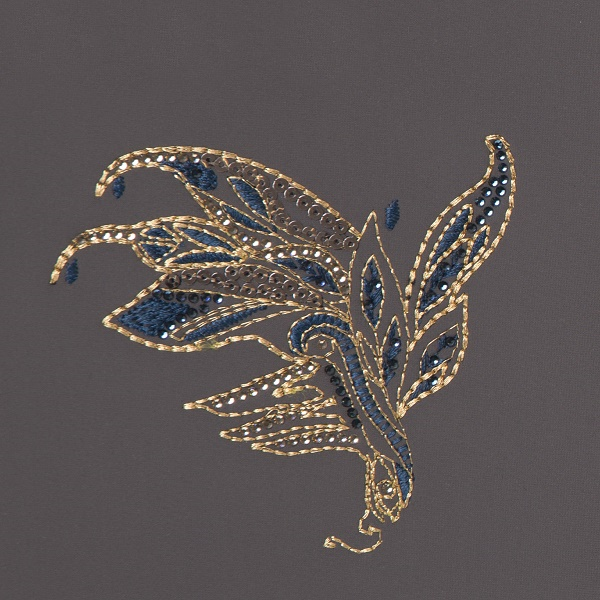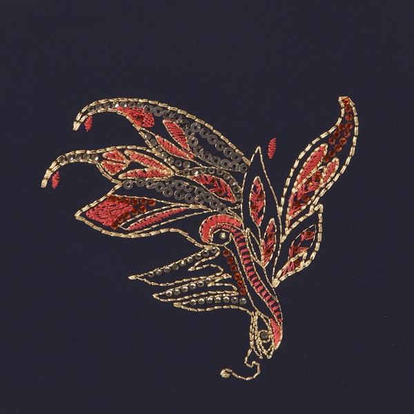 後ろポケットにスパンコールとクリスタルの付いた刺繍入り
