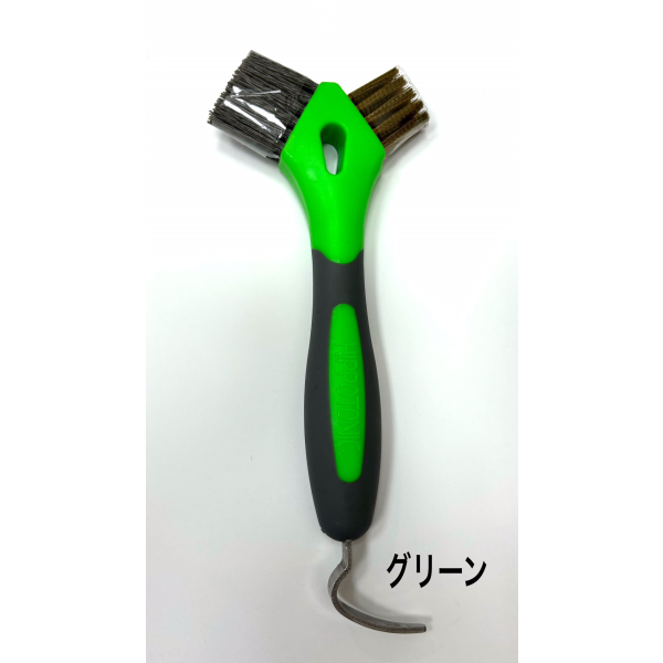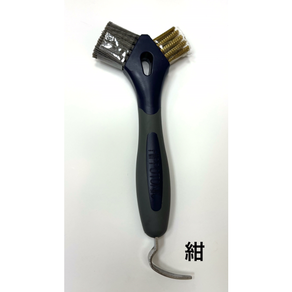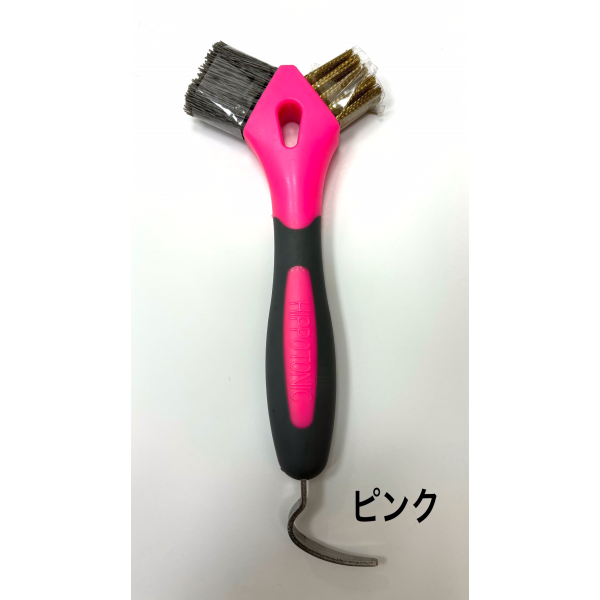 ブラシ部分が、メタル素材とナイロンの2種類で使い分けができる蹄洗棒です。