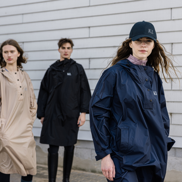 スタイリッシュで防水性のあるレイン ポンチョには便利な引き紐が付いており、突然の豪雨に備えてバッグに収納したり手首に巻いたりできます。