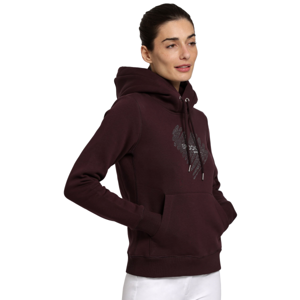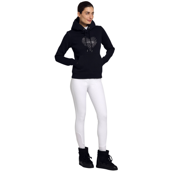 着心地の良いスウェット生地に輝くハート型のプリントとシルバーの刺繍のデザイン入りです。