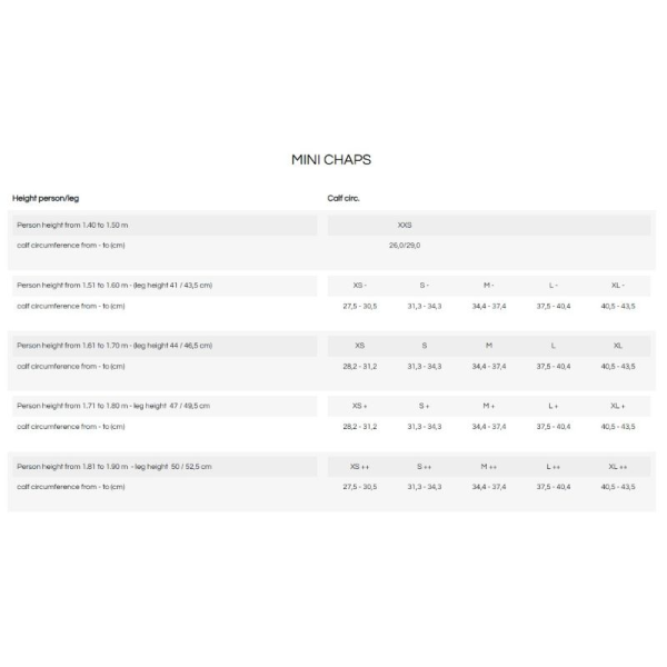 EGO7チャップス サイズ目安<br>