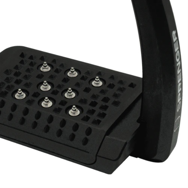 カラー:黒/シルバーサイズ幅:12cm素材:陽極酸化アルミニウム航空宇宙でも使用されているアルミニウムは、長い耐久性と1,600 kg を超える破壊荷重を保証しており品質と耐久性の面で優れています。5°傾斜した幅広のトレッド面により、最適な足の位置を実現。転倒時の際には足を鐙から逃がしやすい設計になっています。こちらは鐙と18本のスパイク+1本のキーのセットです。