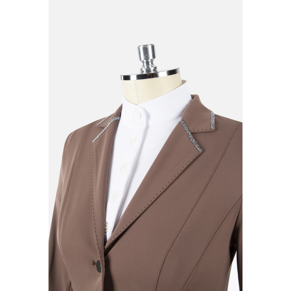襟に細かなクリスタルが敷き詰められたデザイン