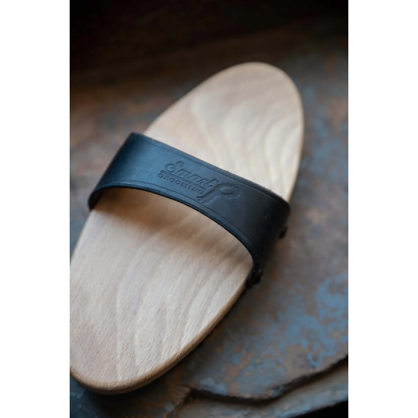 人間工学に基づいた木製バック(木台が山なりになっていて手にフィット)